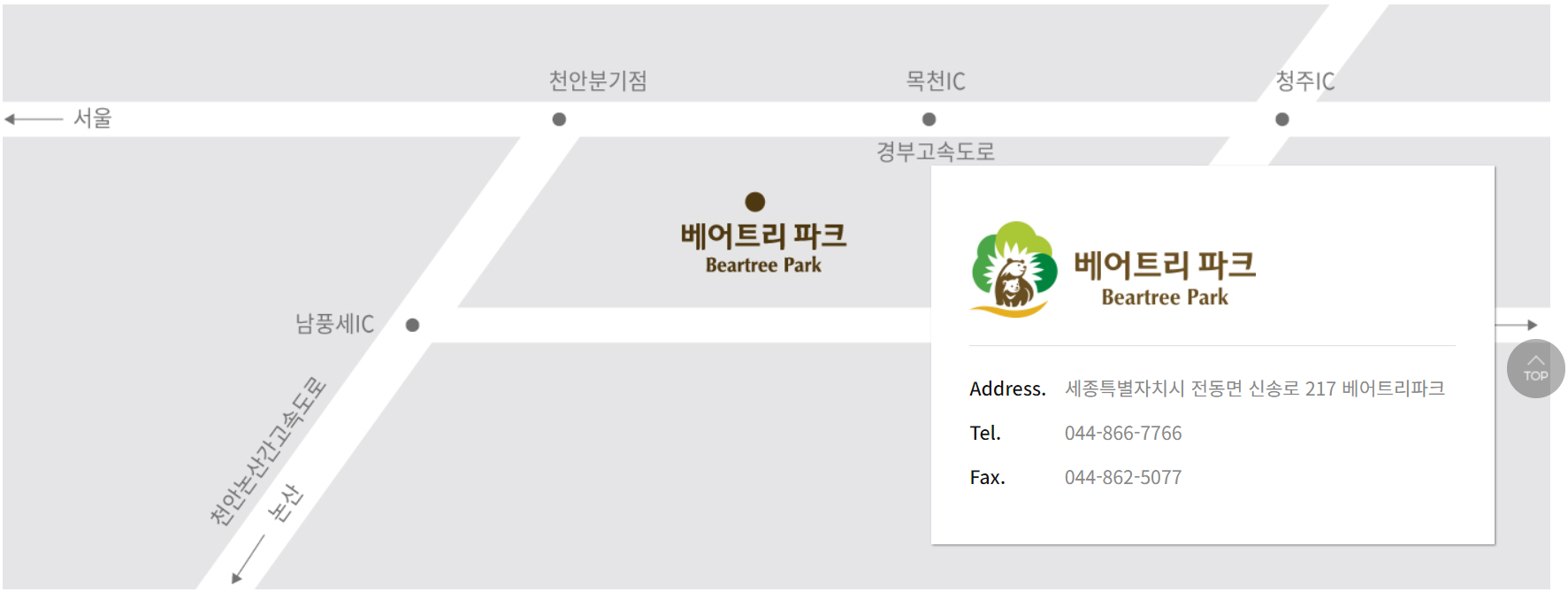 - 주소: 세종특별자치시 신송로 217 베어트리파크