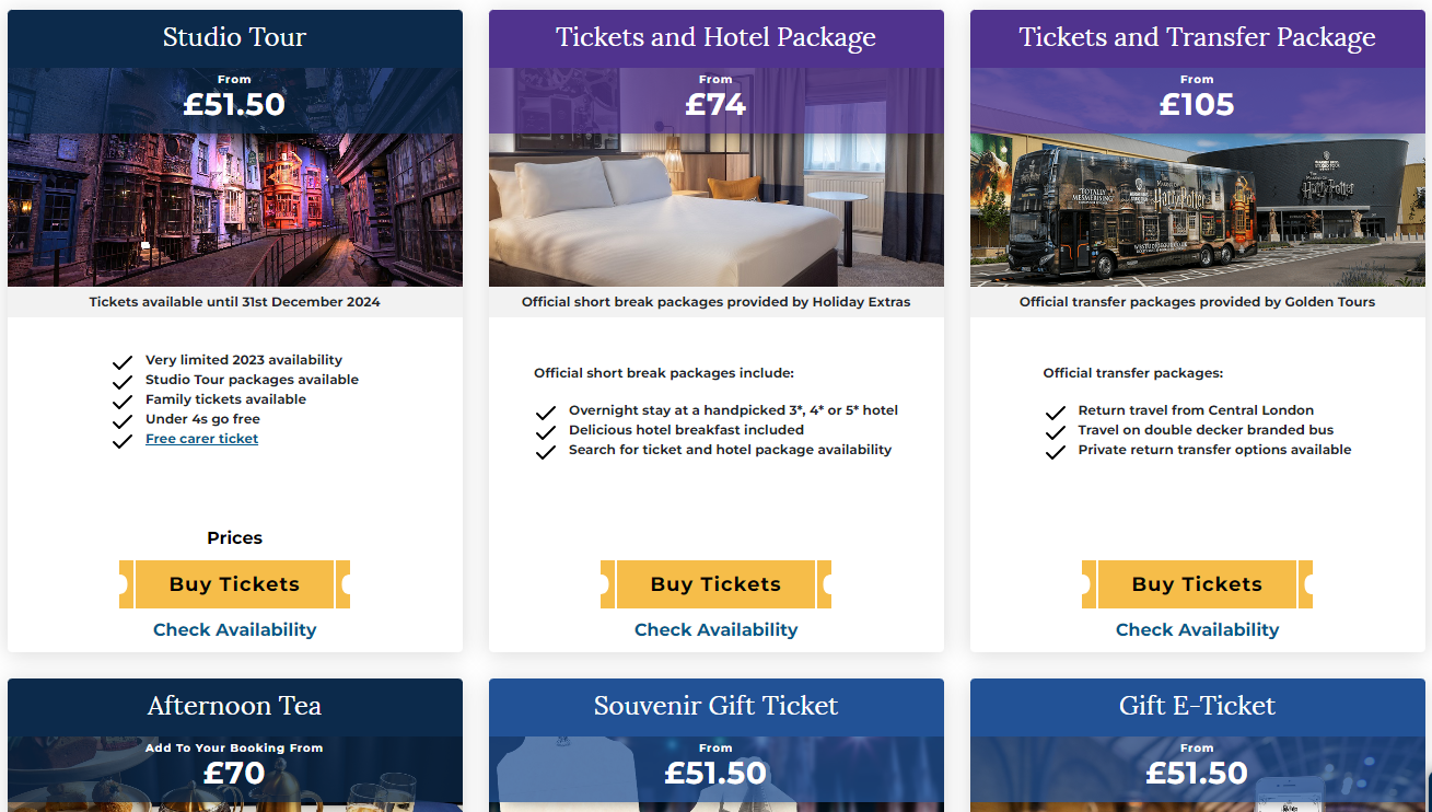 공식 홈페이지 티켓 예매처: https://www.wbstudiotour.co.uk/tickets/