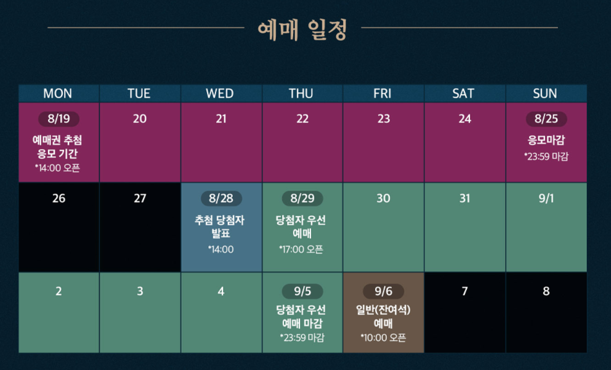 예매일시: 2024년 8월 29일 (목) 17:00시부터 ~