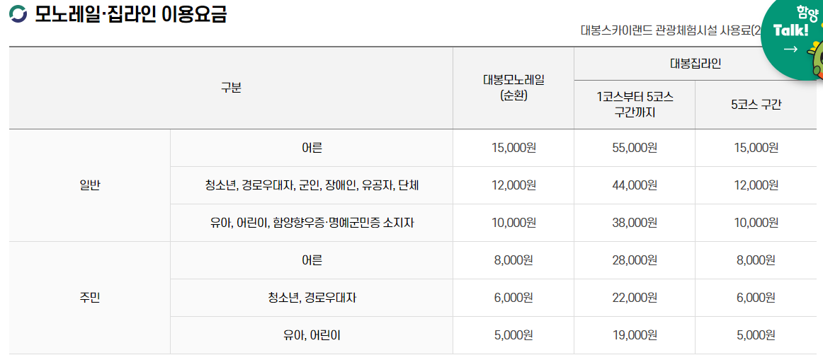 모노레일과 집라인 예약 및 가격