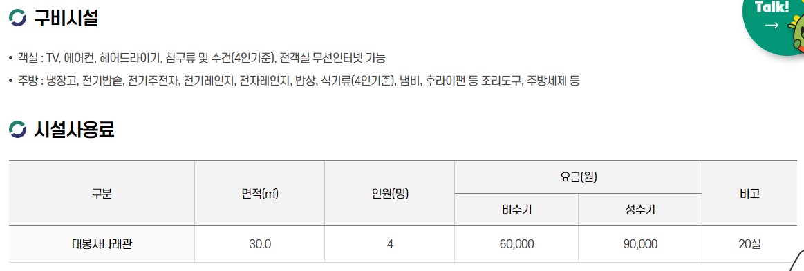 대봉산휴양밸리 예약 정보