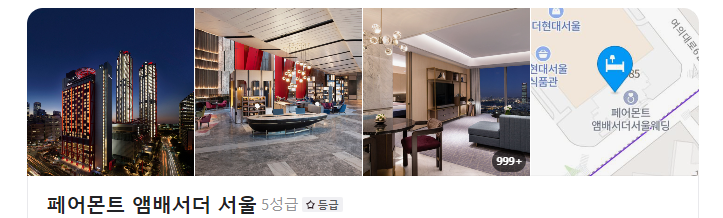 페어몬트 앰배서더 서울: 여의도역과 가까워 접근성이 뛰어나며, 고층 객실에서는 한강과 불꽃놀이를 감상할 수 있습니다.